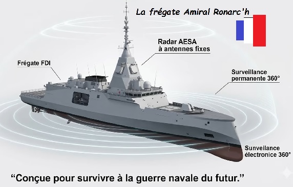 A découvrir : la FREGATE FDI (Frégate de Défense et d’Intervention) l’Amiral Ronarc’h D660 nouvelle classe de frégates, sortie fin 2025. Son étrave inversée, son look du futur, abandonnant ses radars lambdas pour le module PSIM (Panoramic Sensors and Intelligence Module) et sa vision absolue (Sea Fire) 4 460 tonnes pour 122m de long de puissance.