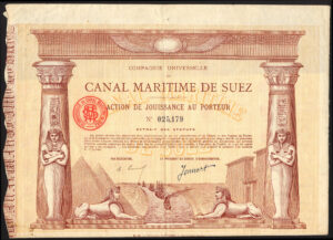 La Compagnie universelle du canal maritime de Suez a été créée en 1858 par Ferdinand de Lesseps pour percer et exploiter le canal de Suez. Ce canal de 193 km entre la mer Méditerranée et la mer Rouge a été inauguré en 1869.