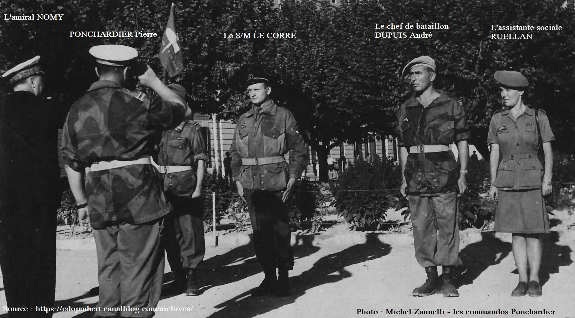 Le capitaine Roger Trinquier et le capitaine André Dupuis, deux frères d’armes des SAS B et du 2e BCCP, avec émotions nous les retrouvons face à face via l’IA générative du XXIe siècle. D’après une photo originale de Michel Zannelli, « les commandos Ponchardier ».